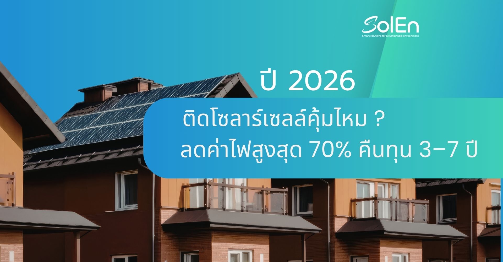 บทความและข่าวสาร Blogs คู่มืออยากติดตั้งโซลาร์เซลล์ ฉบับสมบูรณ์สำหรับมือใหม่ (2026) ปี 2026 ติดโซลาร์เซลล์คุ้มไหมลดค่าไฟสูงสุด 70% คืนทุน 3-7 ปี การลงทุนที่คุ้มค่าด้วย 5 เหตุผลที่ควรติดตั้งโซลาร์เซลล์ ดูทั้งหมด News สรุปเงื่อนไข ติดโซล่าเซลล์ลดหย่อนภาษี สูงสุด 200,000.- อัปเกรดบ้านติดโซลาร์ปี 2568 ลดหย่อนภาษี 2 แสน! ครม. ไฟเขียวร่าง พ.ร.บ. ส่งเสริมการใช้โซลาร์เซลล์ ดูทั้งหมด Trends ราคาโซลาร์เซลล์ ปี2569 กำลังจะแพงขึ้นจริงหรือไม่ อนาคตโซลาร์! Huawei เปิด 10 เทรนด์น่าจับตาใน 5 ปีข้างหน้า RES เปิดตัวเครื่องตรวจวัดแผงโซลาร์เครื่องแรกในไทยและอาเซียน ดูทั้งหมด