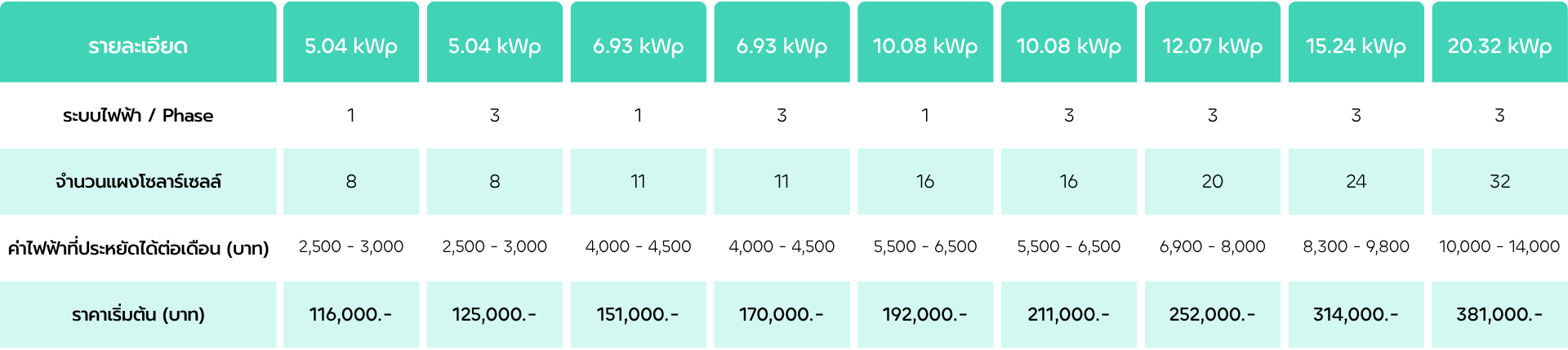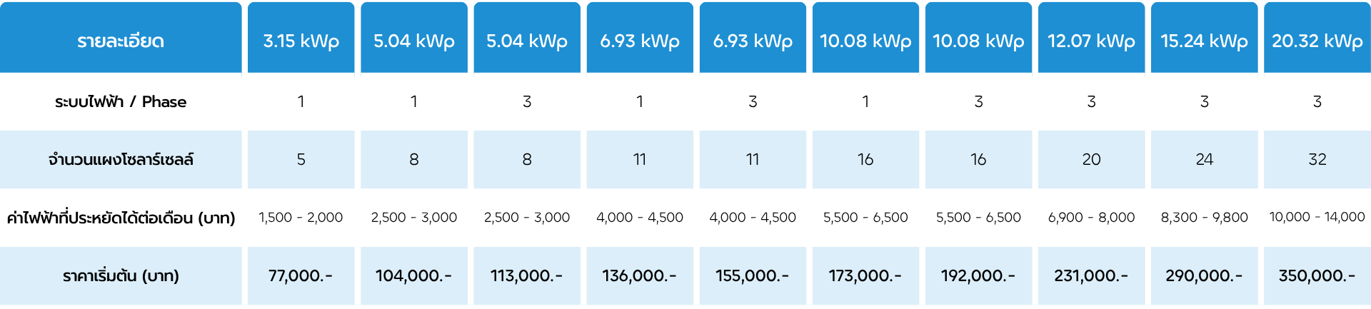 * ไฟฟ้าที่ผลิตได้และค่าไฟที่ประหยัดได้ ขึ้นอยู่กับสภาพหน้างาน (ทิศทาง ความชันของหลังคา) และปริมาณการใช้ไฟฟ้าของแต่ละบ้าน